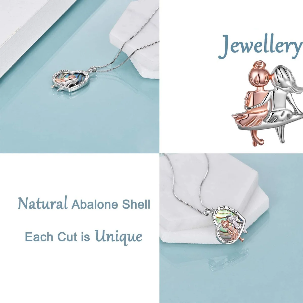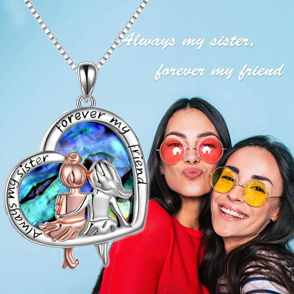 Engraved design: "Always my sister forever my friend" heart-shaped pendant, the figures of the two sisters are very intimate. This love expresses their deep friendship that is always in their hearts